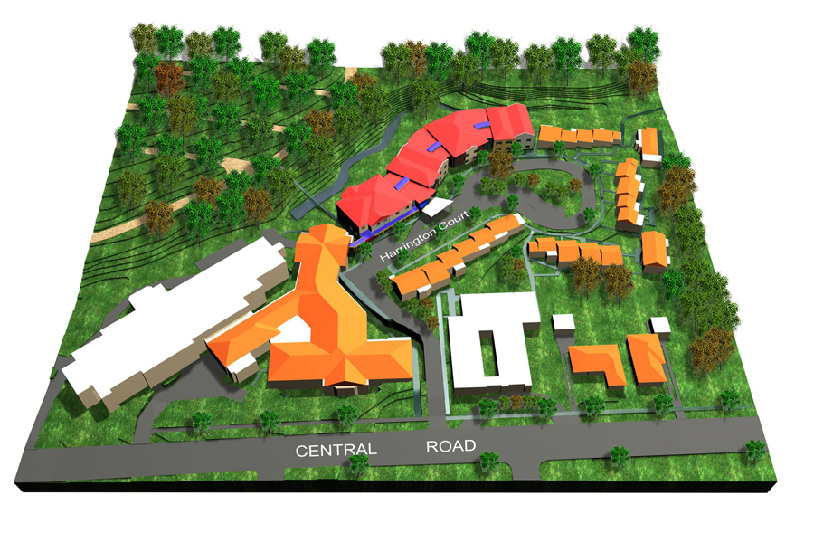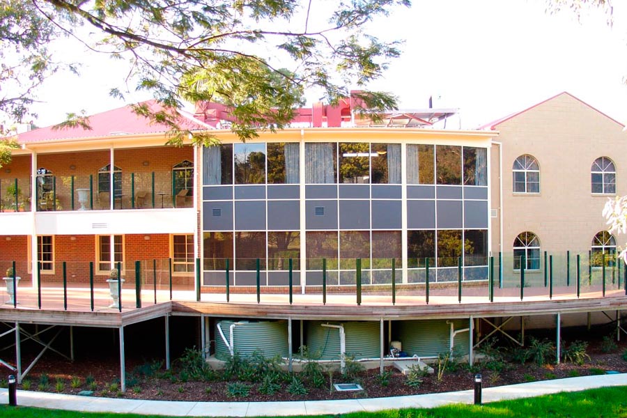 Centre incorporating a gymnasium, hydrotherapy pool, commercial \kitchen and central laundry were also included in the development.